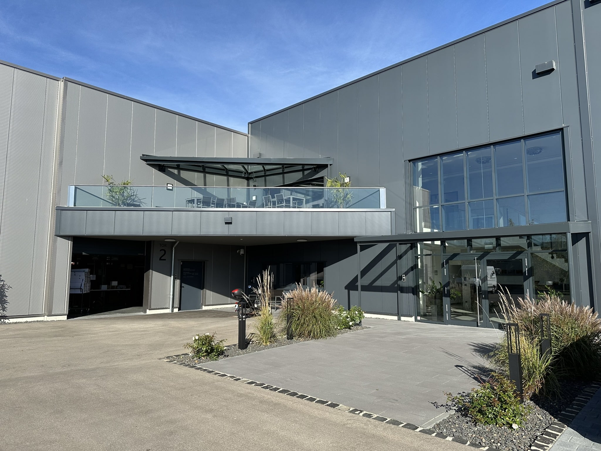 GIESERS BAU übernahm die Planung und Realisierung des gesamten Betriebsneubaus bestehend aus Logistikhalle, Bürogebäude und Vorführzentrum. Das Gebäudeensemble wurde als klar gegliederter Industriebau mit großzügigen Glasfassaden, modernen Stahl-Sandwichfassaden und einer markanten Dachterrasse konzipiert. So entstand ein architektonisch hochwertiger Firmensitz mit hohem Wiedererkennungswert.