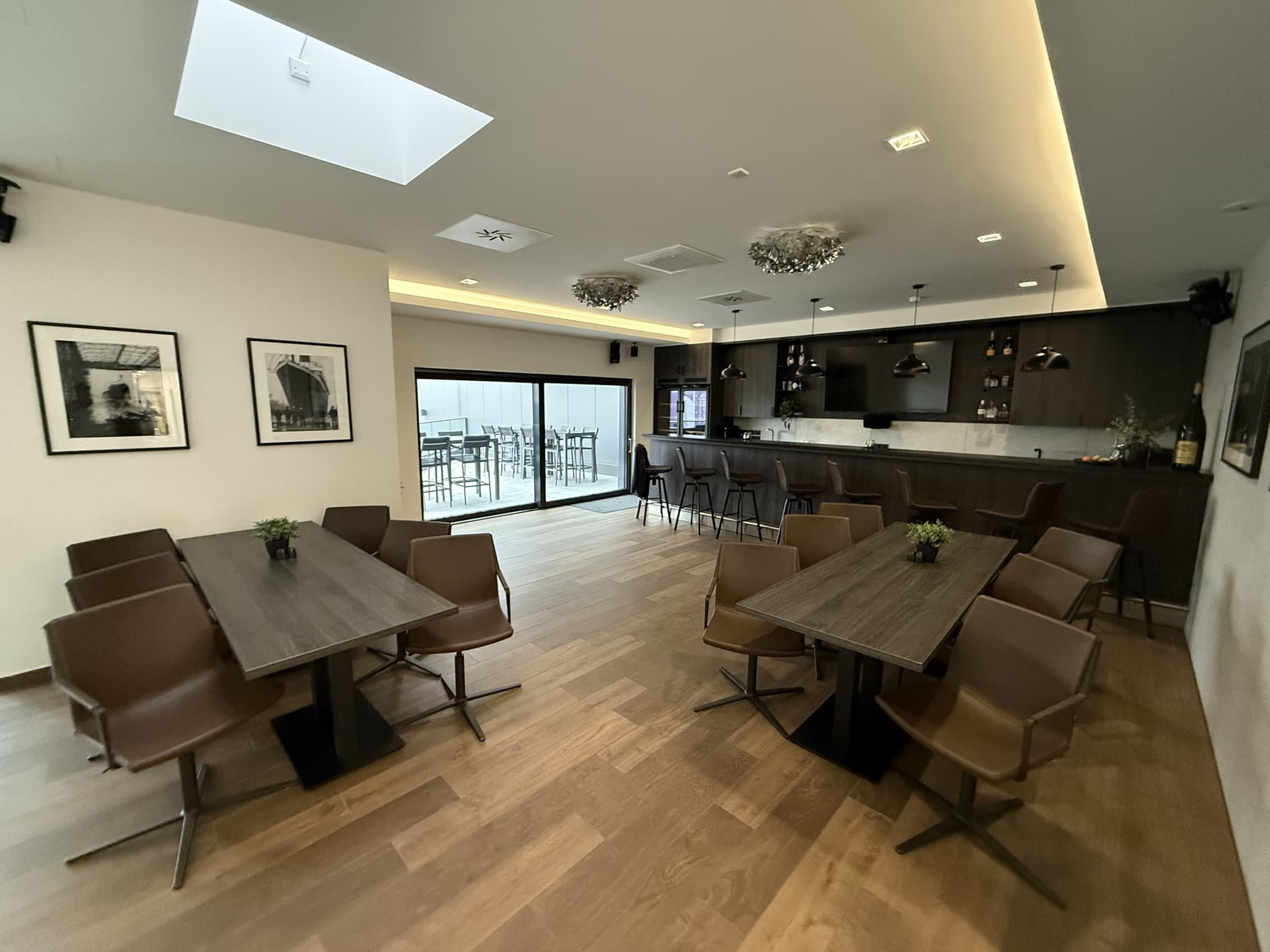 Der angeschlossene Bürotrakt wurde als zweigeschossiger Stahlbetonbau mit Dachterrasse ausgeführt. Großzügige Fensterflächen, außenliegender Sonnenschutz und hochwertige Aluminium-Fenster- und Türsysteme sorgen für lichtdurchflutete Arbeitsplätze und hohen Nutzerkomfort. Die Dachflächen wurden als energieeffiziente Warmdächer mit leistungsstarker Wärmedämmung und integrierten Entwässerungssystemen ausgeführt.