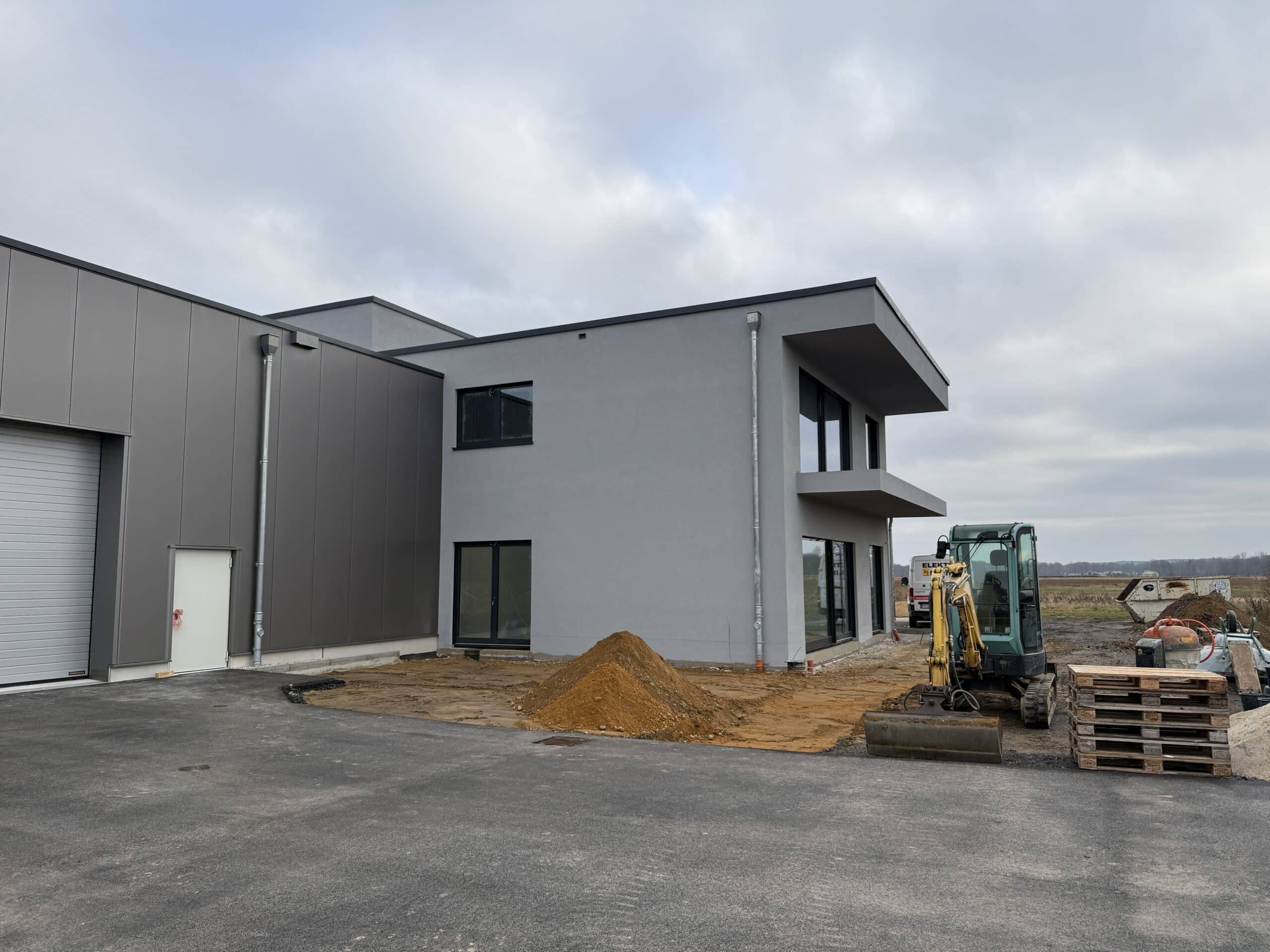 Während der Realisierungsphase liegt ein besonderer Fokus auf einer präzisen Ausführung aller Bauleistungen, abgestimmt auf die spezifischen Anforderungen des Auftraggebers. Die Bauweise kombiniert funktionale Industriearchitektur mit modernen gestalterischen Elementen. Tragwerk, Gebäudehülle und Innenräume werden so umgesetzt, dass sie sowohl energetische als auch wirtschaftliche Aspekte berücksichtigen. Großzügige Spannweiten, eine optimierte Tageslichtnutzung und langlebige Fassadenmaterialien tragen dazu bei, ein nachhaltiges und zukunftsfähiges Arbeitsumfeld zu schaffen.