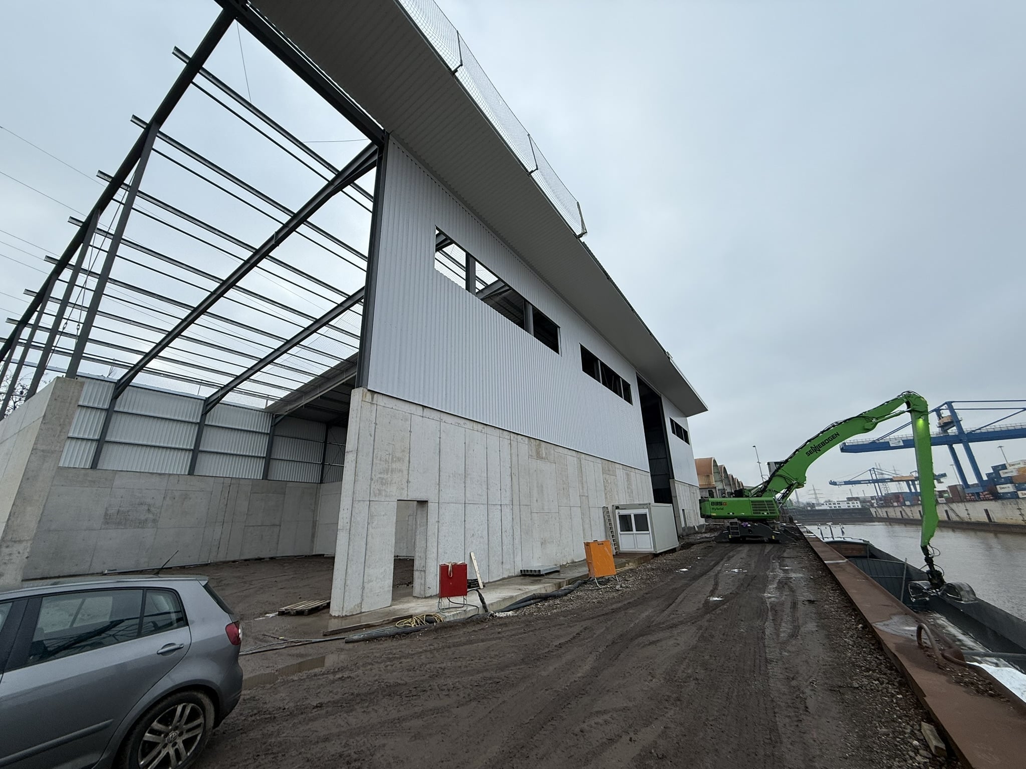 Die Halle erreicht eine Länge von rund 120 Metern, Spannweiten zwischen etwa 20 und 25 Metern sowie eine Traufenhöhe von bis zu rund 11,7 Metern. Diese Dimensionen schaffen flexible Flächen für Lagerung und Warenumschlag.