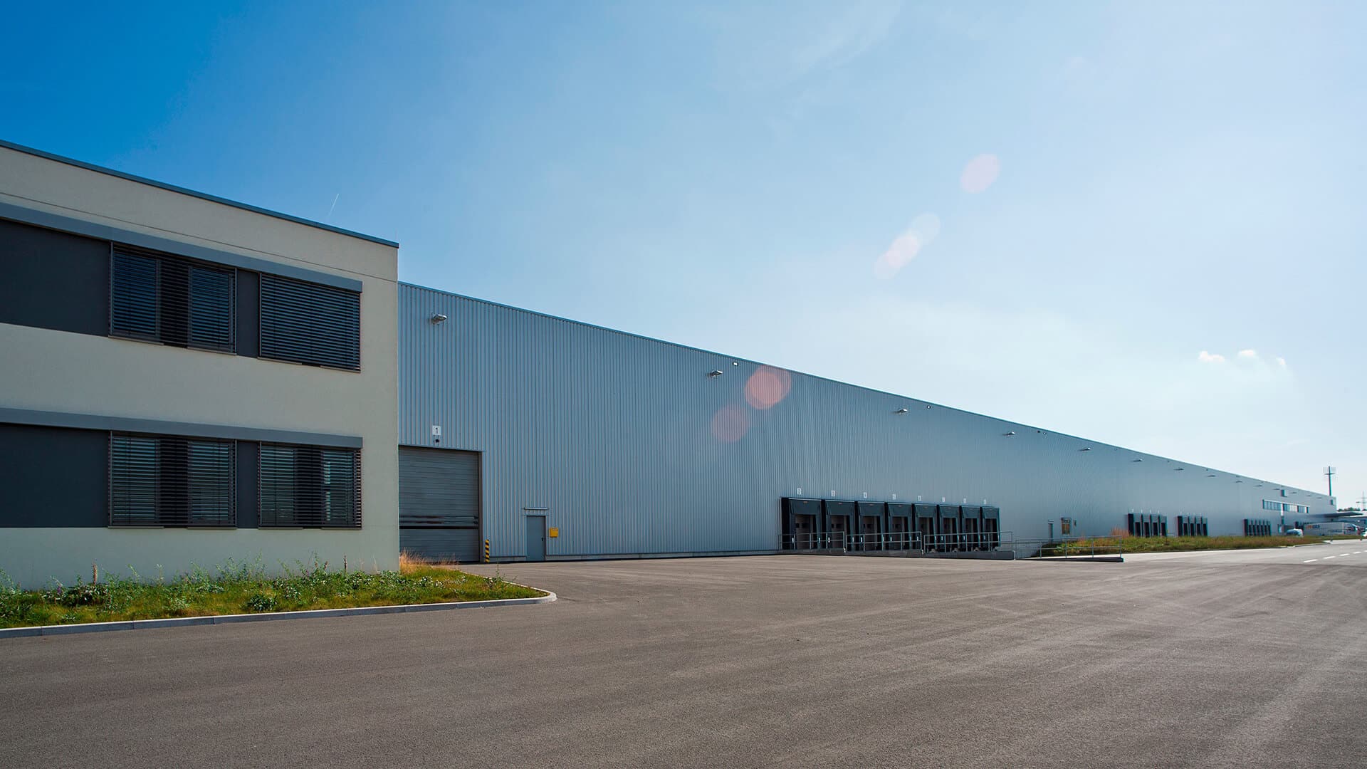 Großzügig dimensionierte Hallenflächen, eine hohe lichte Raumhöhe sowie eine Vielzahl an Rampen- und Sektionaltoren schaffen optimale Bedingungen für Warenumschlag, Lagerhaltung und Distribution. Die Logistikhallen sind auf die Anforderungen moderner Lieferketten ausgelegt und ermöglichen einen reibungslosen Lkw-Verkehr sowie kurze Umschlagzeiten. Ergänzt wird das Konzept durch integrierte Büro- und Sozialbereiche, die funktional in den Hallenkomplex eingebunden sind.