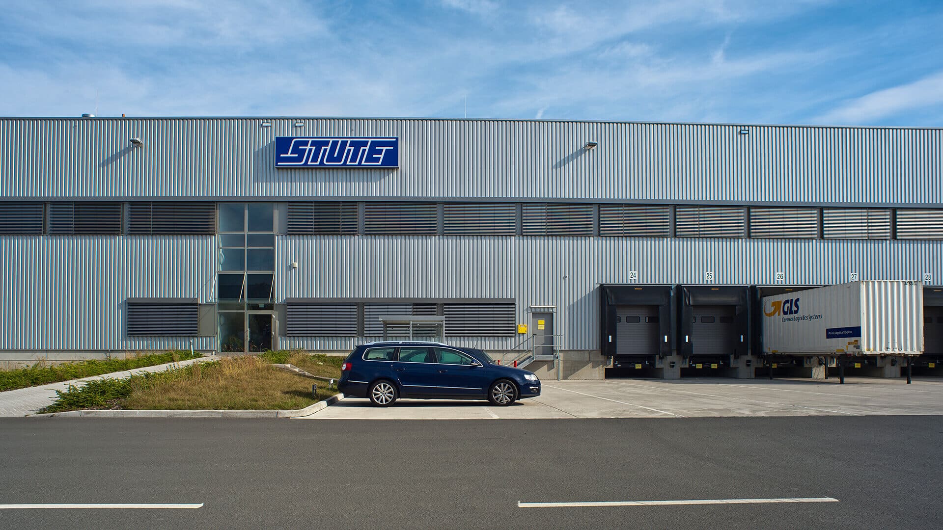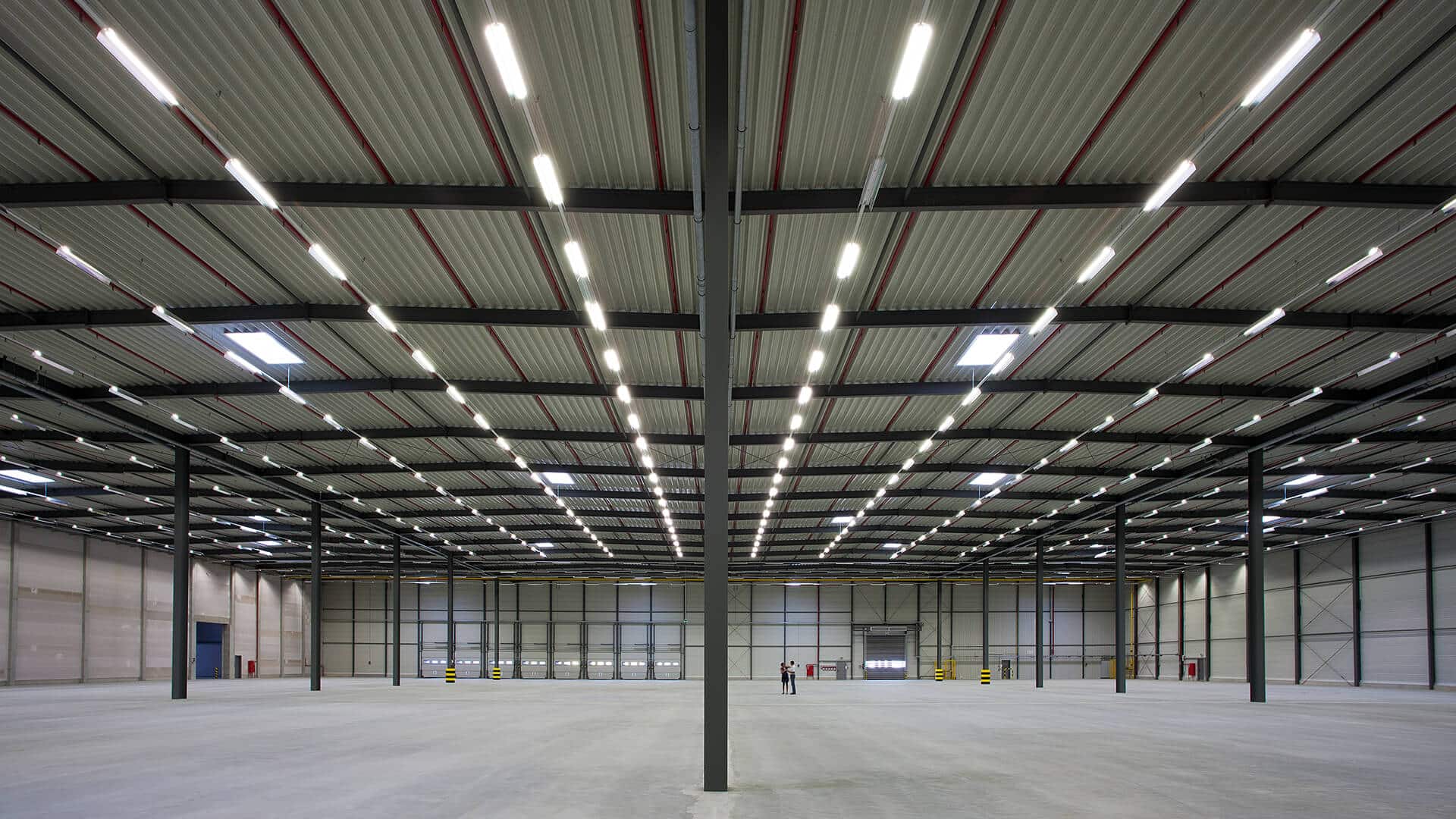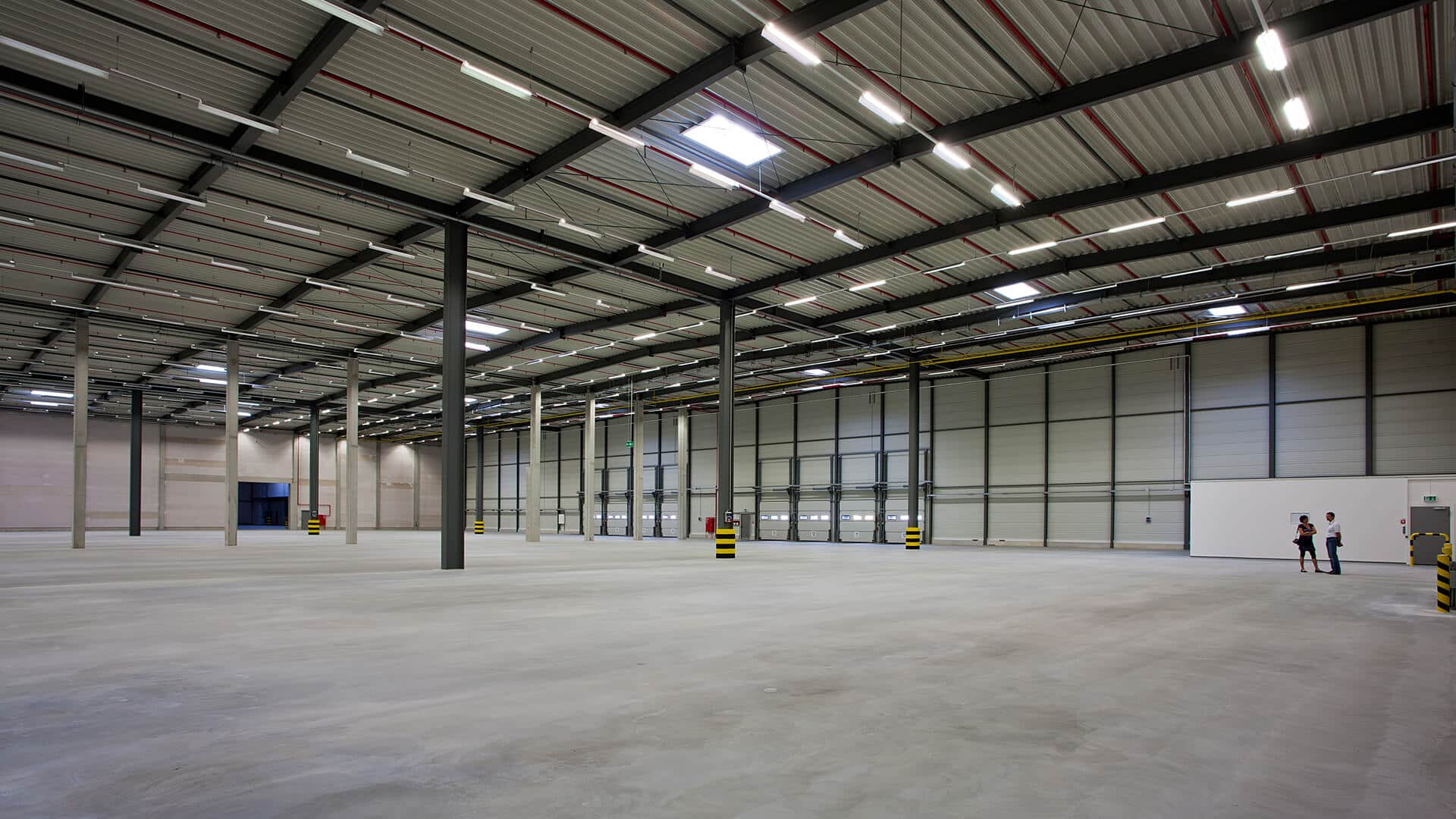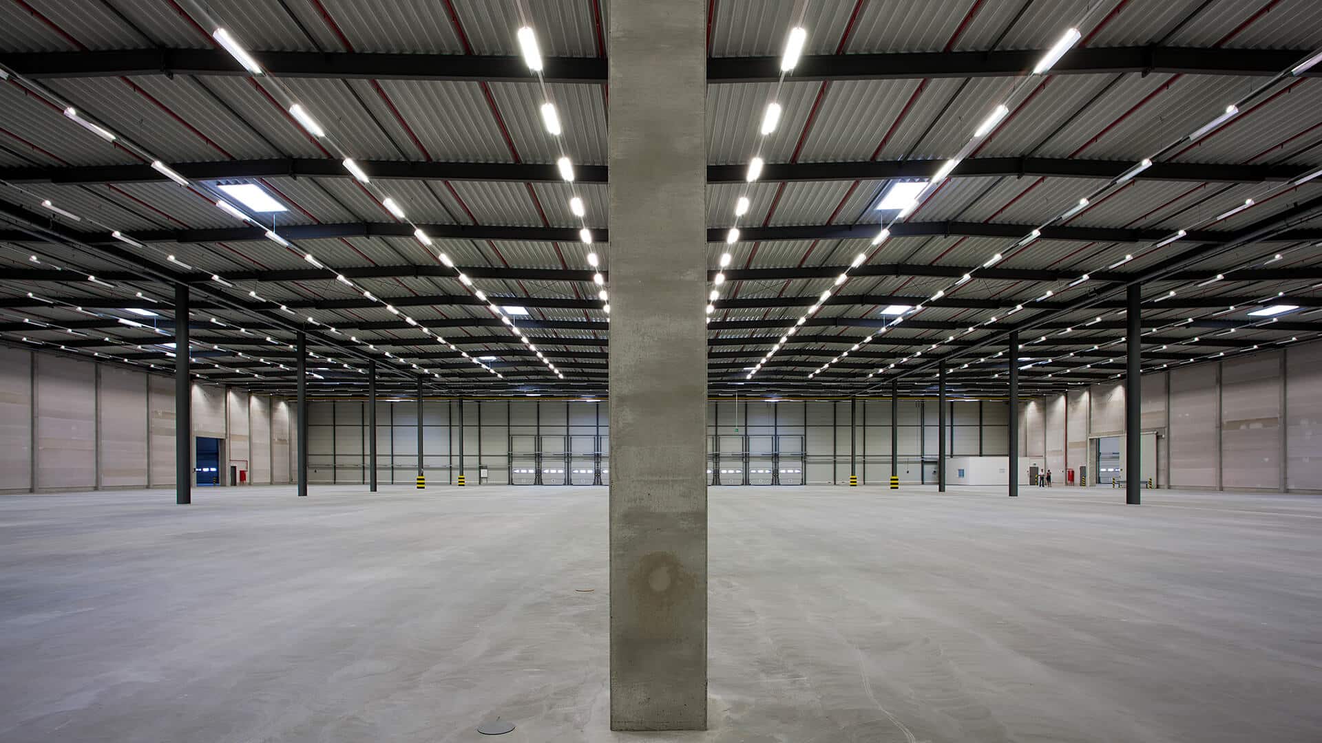 Der Logistikpark wurde als moderner Neubau auf der grünen Wiese realisiert und überzeugt durch eine klare, funktionale Architektur sowie durchdachte industrielle Bauweise. Die Hallenstruktur basiert auf einer tragenden Stahlbetonkonstruktion mit großformatigen Spannweiten, die eine flexible Nutzung der Flächen ermöglicht. Robuste Betonstützen, eine leistungsfähige Bodenplatte sowie eine hochwertige Gebäudehülle aus gedämmten Sandwichpaneelen gewährleisten Langlebigkeit, Energieeffizienz und hohe Belastbarkeit im täglichen Betrieb.